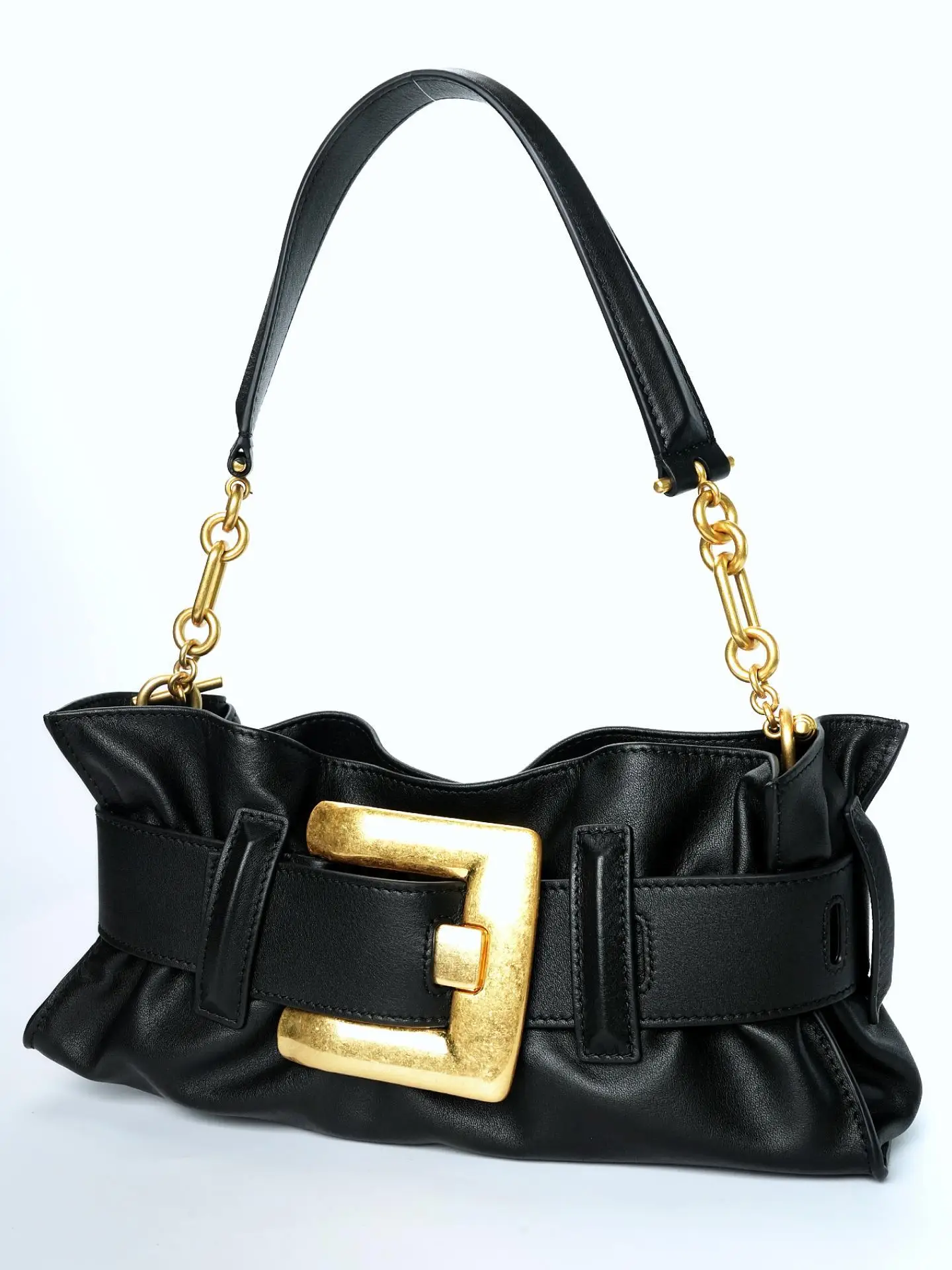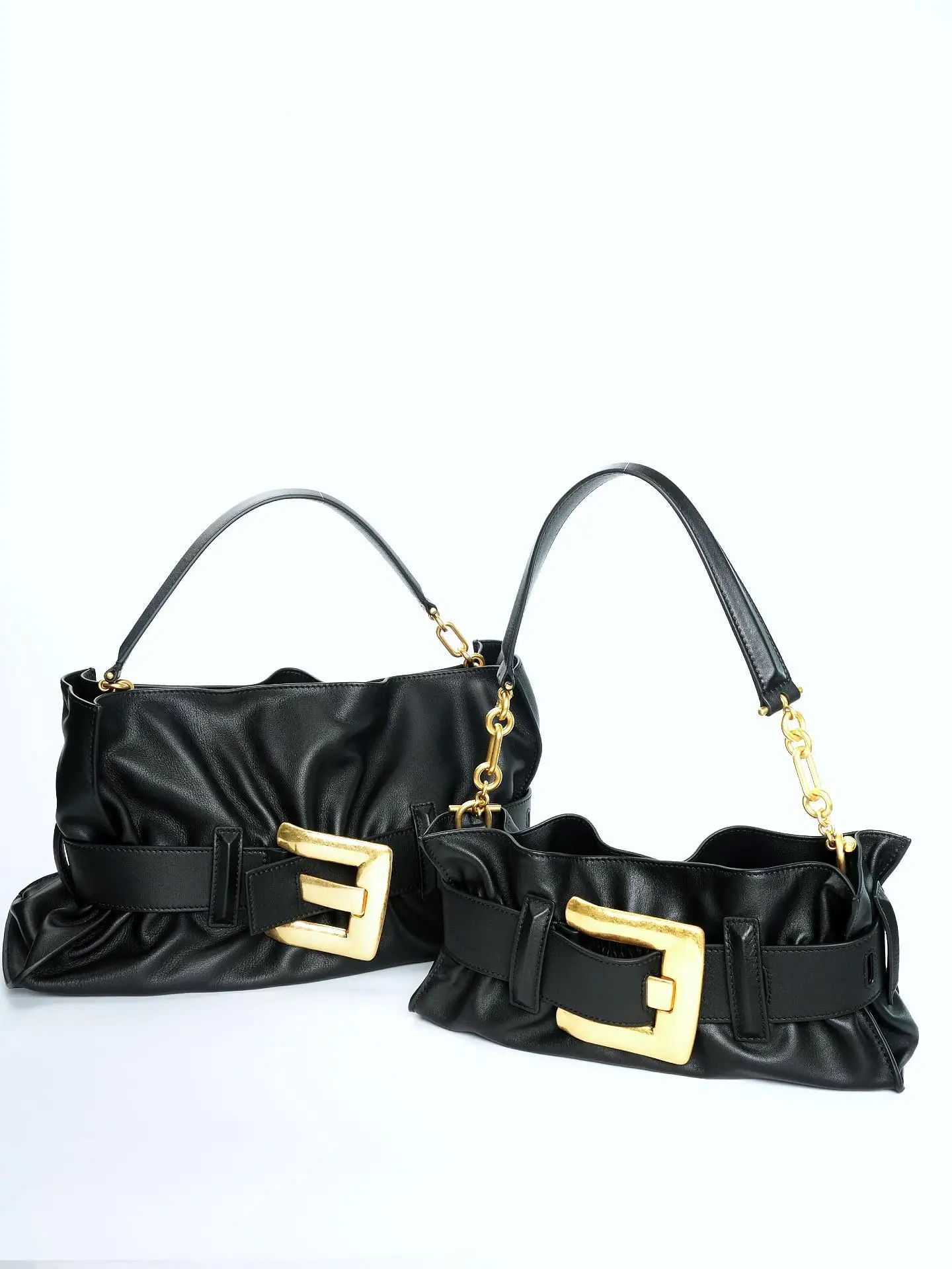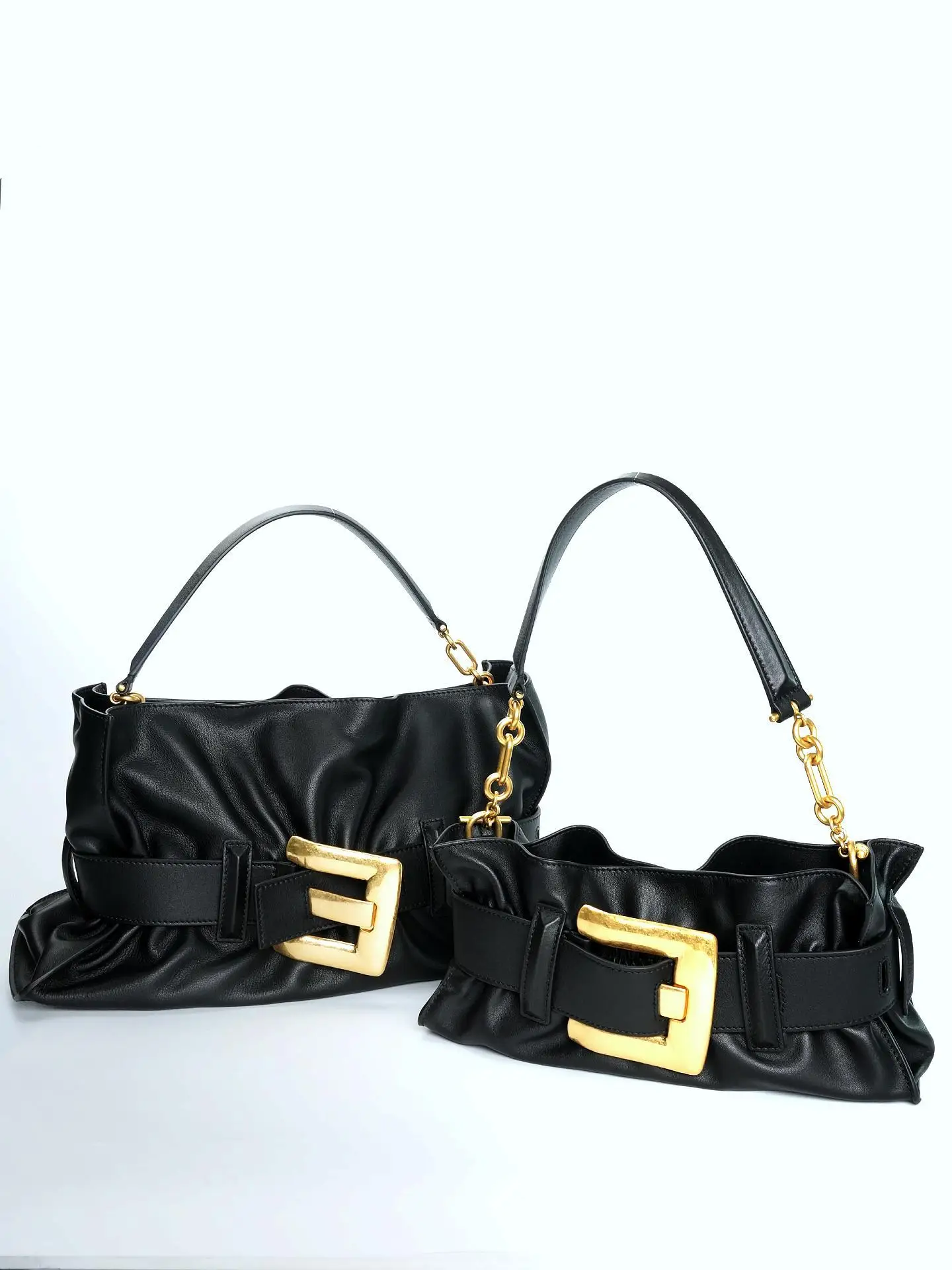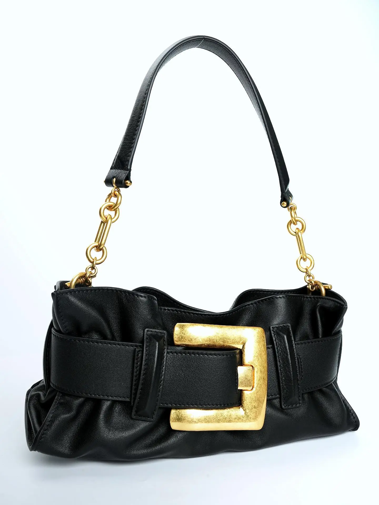 25 Summer Women's Soft Leather Pleated Shoulder Underarm Bag Simple Large Gold Buckle Commuter Leisure Fashion Hangbag