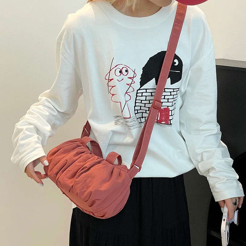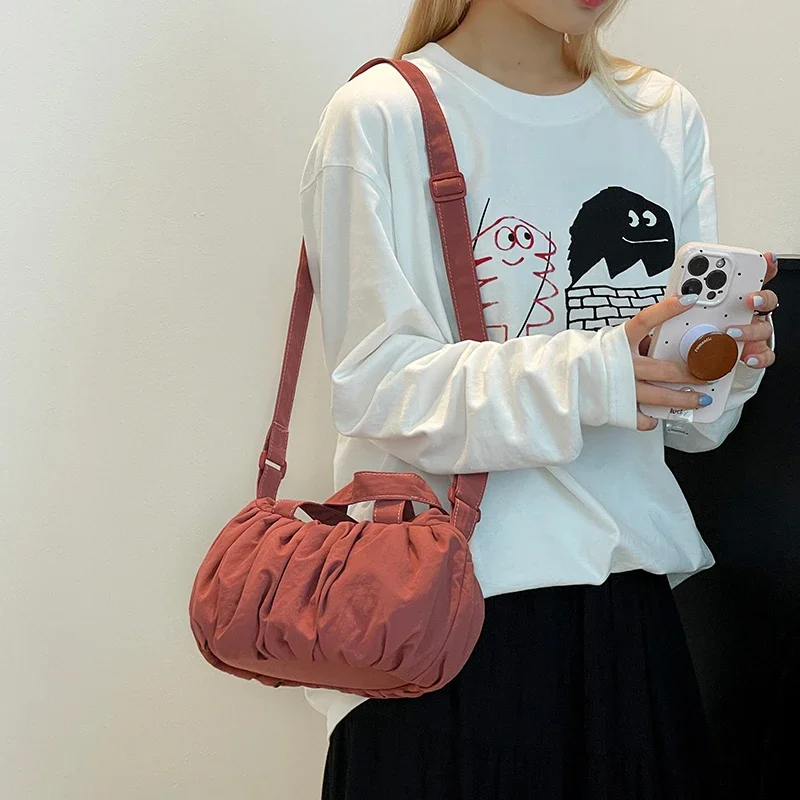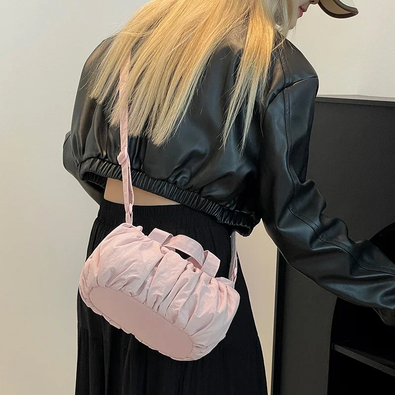 Summer Waterproof Nylon Fabric Casual Versatile Crossbody Bag and Shoulder Bags for Woman New Pleated Cloud Bag Fashionable